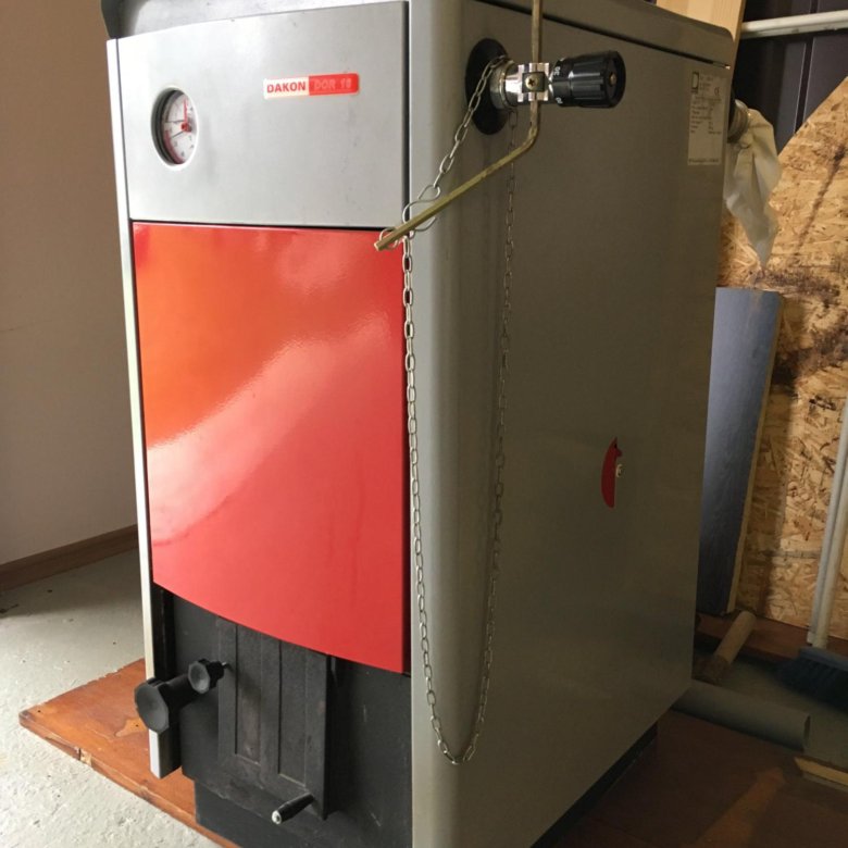 Пеллетная горелка BurnPell X.Mini (26 кВт) установлена в твердотопливном котле DAKON. Дверь была сделана заново, поэтому была оставлена возможность ее использования.