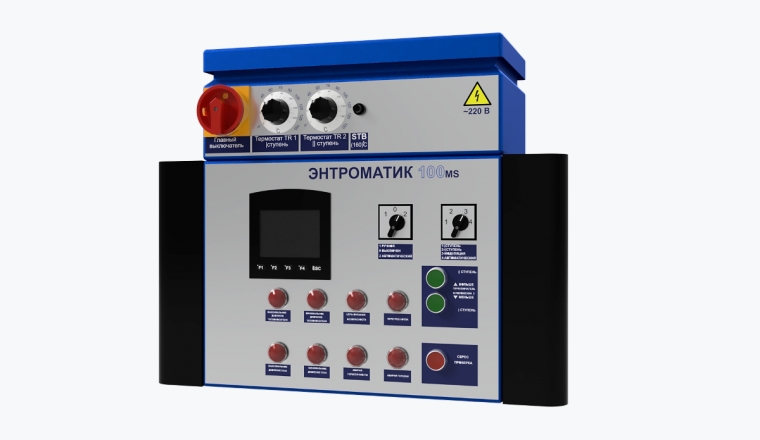 При разработке системы автоматизированного управления (САУ) «Энтроматик» как серийного продукта было необходимо выбрать контроллер с малыми габаритными размерами, низкой ценовой нагрузкой и возможностями конфигурирования состава средств автоматизации (ПЛК) под стандартные тепловые решения. После мониторинга рынка контроллеров было выявлено, что контроллеры компании Unitronics полностью удовлетворяют этим требованиям.