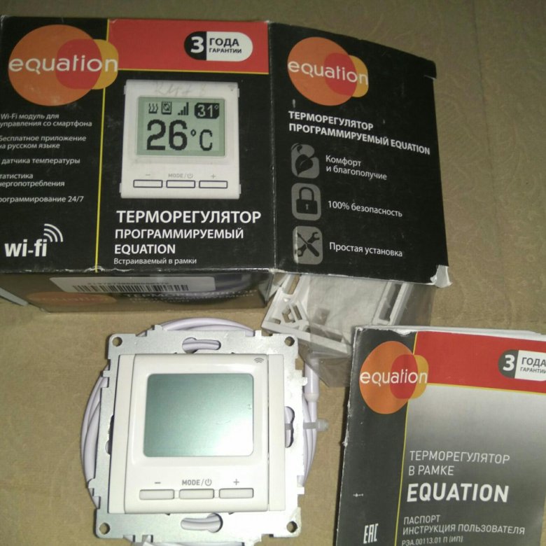 В комплект к терморегулятору входит датчик температуры, монтажная коробка, клеммы, инструкция по монтажу и эксплуатации