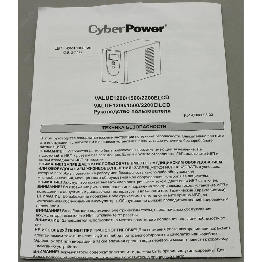 2. ИБП должен храниться в прохладном сухом месте.