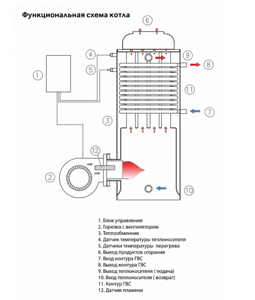 Контур горячего водоснабжения котла подключается к системе горячего водоснабжения здания.