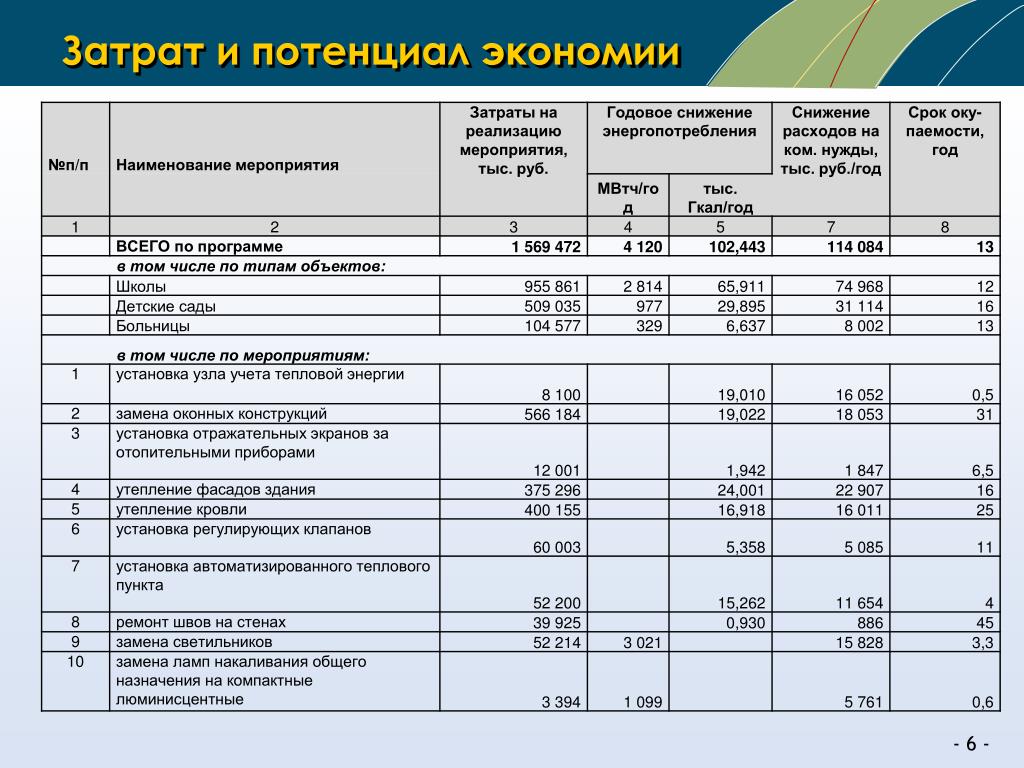 - Мероприятия, проведение которых не обязательно, но может быть экономически выгодно. Перед проведением таких мероприятий делается технико-экономическое обоснование.