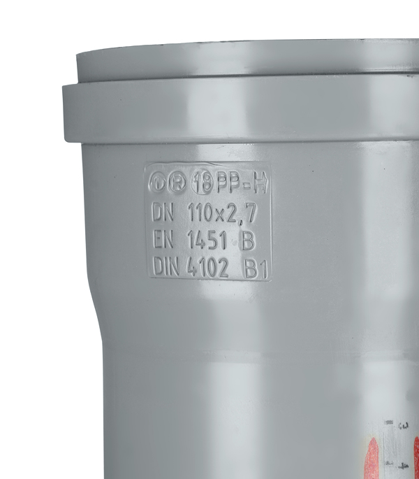 Трубы изготавливаются из полипропилена и устойчивы к возгоранию согласно стандартам DIN 4102 (B 1) и DIN EN 1451-1.