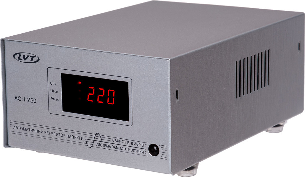 Также этот прибор часто используют для выравнивания вольтажа и питания дорогой бытовой техники в доме (новых телевизоров, холодильников, телевизионных приставок, модемов и роутеров). Стабилизатор принимает входное напряжение от 140 Вольт (самое низкое) до 260 Вольт (высокое) и приводит его к норме 220 Вольт. Возможные отклонения составляют всего 8%. Расположение прибора напольное. Корпус металлический, оснащен ручкой для переноски. Для информирования о происходящих процессах имеется цифровое табло.