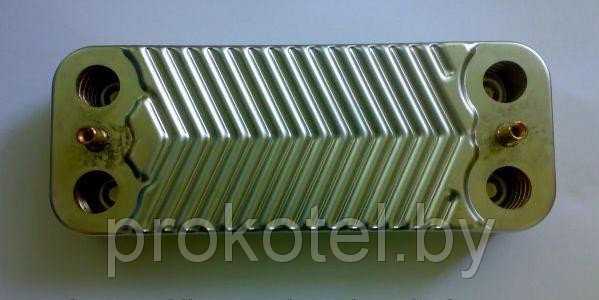 Второй: пластинчатый из нержавеющей стали – большой объем горячей воды и устойчивость к солям жесткости, которые отлагаются в минимальном кол-ве за счет более «щадящего» температурного режима, чем в котлах с битермическим теплообменником.