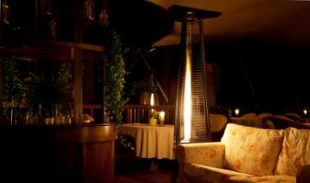 Подобные устройства специально были сконструированы для обогрева больших открытых площадок. Они создают комфортные условия для тех, кто захотел повеселиться на улице, устроить для себя праздник, восхищаясь красотами окружающего пейзажа. Затею быстро подхватили не только дачники, но и рестораторы. Они предлагают своим посетителям обед или ужин за столиками, выставленными на улице перед парадным фасадом.