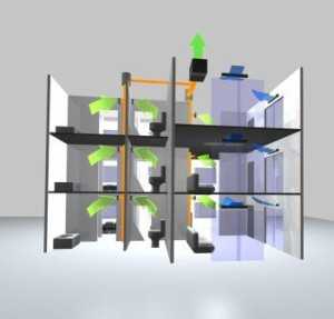 2. Перепланировка системы или установка агрегатов для принудительной вентиляции в соседних квартирах (актуально для многоквартирных домов), на что возможностей стандартной системы просто-напросто не хватает.