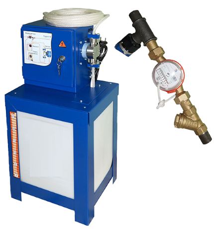 Водосчётчик входит в комплект поставки и снабжен электрическим адаптером для передачи информации о величине расхода и устройством ввода реагента (реагент вводится из блока управления и дозирования (БУД) непосредственно в водосчётчик или фильтр-грязевик и смешивается в нем с подпиточной водой).