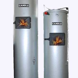 У этого цилиндрообразного котла интересный принцип работы: горит только небольшой верхний слой заложенного топлива (обычно это дрова или древесные брикеты). Поэтому одной закладки вам хватит минимум на 7 часов. А если на улице очень холодно, и есть потребность в более долгом поддержании температуры, котел может работать непрерывно около полутора суток. Удобно и то, что несмотря на свою высоту (свыше полутора метров) помещение этот агрегат не загромоздит – он узкий и изящный. Дорогой, но качественный. Основные плюсы: