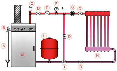 - Замкнутые отопительные системы с циркуляцией теплоносителя создаваемой насосами.