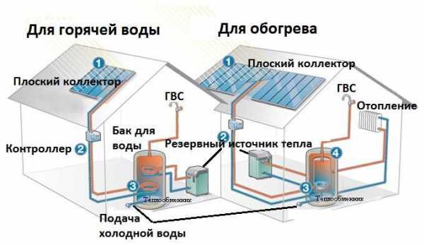Для обеспечения дома теплой водой и для водяного отопления можно использовать солнечные коллекторы (плоские и трубчатые)
