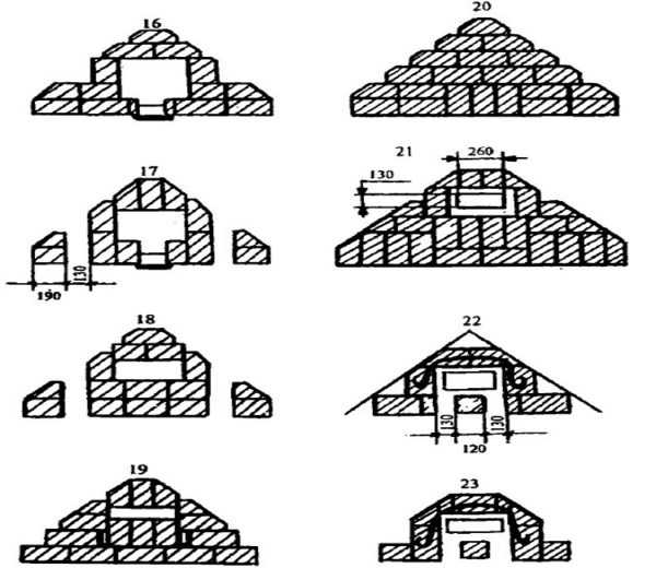- Если перекрытие будет делаться из кирпича в виде свода то нужно будет со стороны топки сделать опалубку в виде свода. Кирпичи в опалубку нужно укладывать равномерно сразу от обоих стенок двигаясь к центру. Рекомендуется предварительно кирпичи обтесать в виде клина чтобы толщина швов между кирпичами была одинаковой. Выложенный свод на несколько дней оставляют набираться прочности и только потом убирают опалубку.