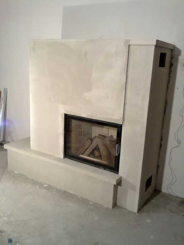 Весь процесс монтажа этого камина занял четыре дня. Учесть стоит и то, что половину дня из этих четырех гильзовался дымоход, а также ровнялась кладка. Современные печные материалы позволяют достаточно быстро собрать подобные камины, в конечном итоге остается только надеть монтажную рамку. Она не была поставлена сначала, так как ставится после просушки камина.