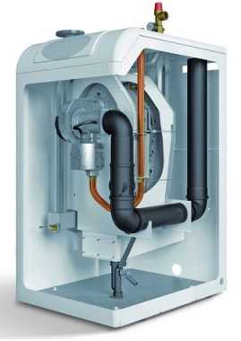 Остывшая вода из радиатора отопления снова идёт в теплообменник и процесс повторяется. Конденсационный котёл обычно бывает напольный, но часто встречаются и настенные варианты. Продукты сгорания поступают наружу через дымоход или вентиляцию.