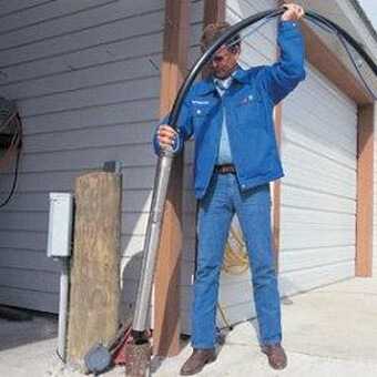 Если нет возможности использовать вибрационный насос или дополнительный шланг с грузом, то грязь со дна поднимают обычной двухдюймовой трубой с заточенным в виде трезубца наконечником. Инструмент делают тяжелым, но таким, чтобы можно было вытащить тросом из грязи. Трубу опускают на дно и рыхлят слой грязи в воде. После этого опускают погружной или вибрационный насос и откачивают грязную воду.