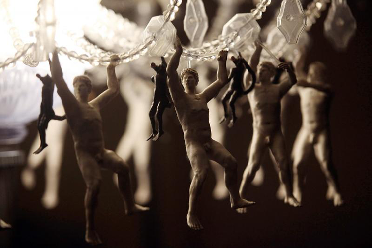 Раньше представить, что в Пушкинском покажут поколение YBA — как называют «молодых британских художников», — было довольно сложно, однако чудеса случаются: первым стартует Мэт Коллишоу, один из главных провокаторов этого направления. Среди его программных работ — натюрморты последнего ужина приговоренных к смерти, выполненные в стиле Франсиско де Сурбарана и голландских художников XVII века. Коллишоу встречался с Трейси Эмин, дружил с Дэмиеном Херстом и много работал с картинами старых мастеров. Специально для ГМИИ он придумал произведение по мотивам «Вакханалии» Рубенса: при быстром вращении колоссальной люстры с богатым барочным декором создается эффект мультипликации действия.