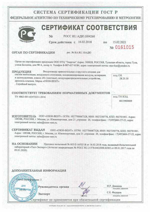 гарантия качества всей Вашей вентиляционной системы на многие годы! *